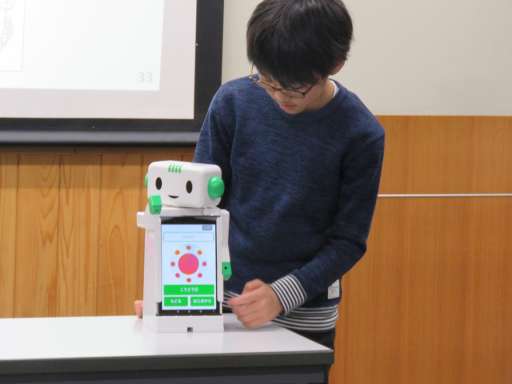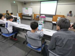 講座では2つの目標があり、1つ目が「プログラム」と「プログラミング」の言葉の意味や違いを知ろう。2つ目が自分でプログラミングを作ってロボット「こくり」を動かしてみよう。この2つの目標達成を目指して、参加してくれた皆さん、楽しみながら学んでくれました。