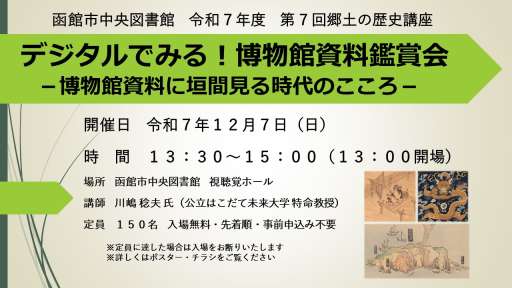 主 催:市立函館博物館/函館市中央図書館 指定管理者:図書館流通センター・マルエイヘルシーサービス共同事業体