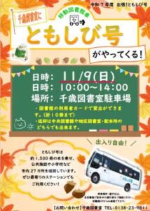日 時:11月9日(日)10時~14時 場 所:千歳図書室駐車場