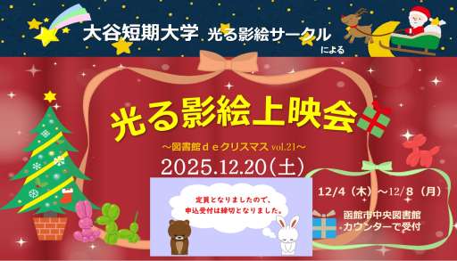 【受付終了しました】図書館deクリスマスvol.21「光る影絵」上映会のお知らせ