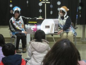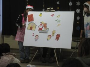(写真は昨年度の湯川図書室クリスマスよみきかせ会の様子です)